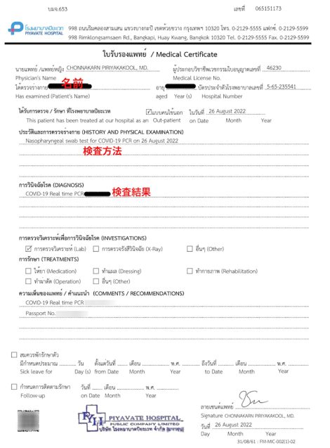 24時間以内の検査結果なら2750バーツ、6時間以内なら4700バーツ、90分以内の検査結果なら5500バーツとなっています。