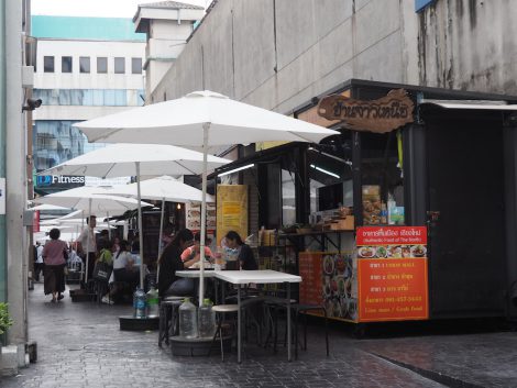 階段を降りてすぐ右手側のビルの脇に屋台群が伸びています。この中程に「ジュブジュブカオマンガイ」はあります